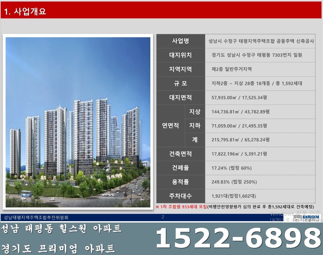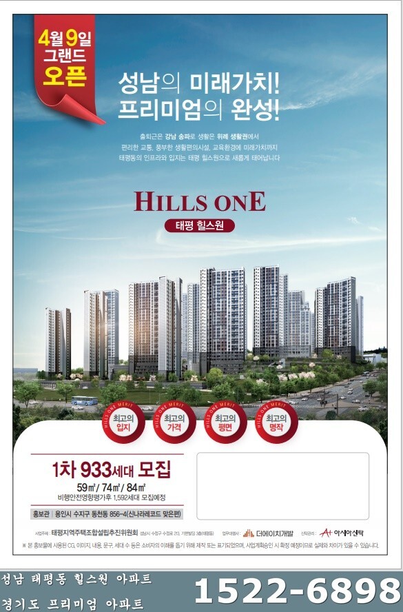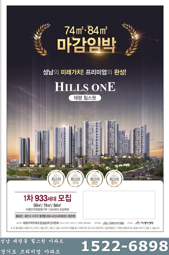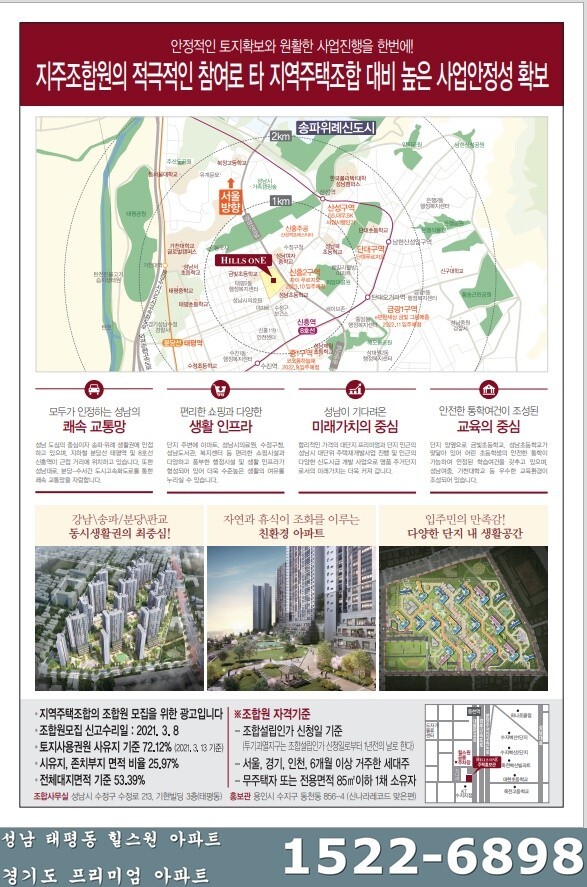 ▣ 성남 태평동 힐스원 아파트 대단지 1차 933세대 조합원모집