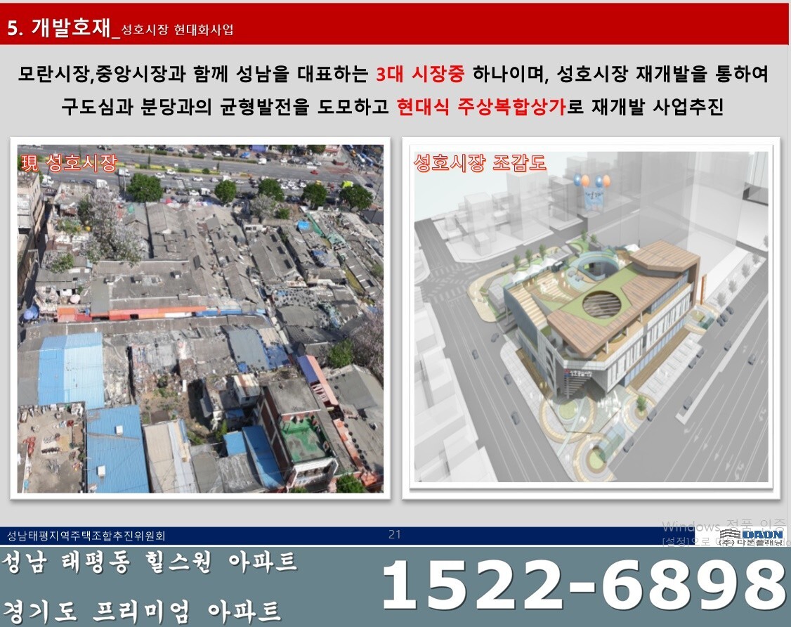 - 모란시장, 중앙시장과 함께 성남을 대표하는 3대 시장중 하나이며, 성호시장 재개발을 통해 구도심과 분당과의 균형발전을 도모하고 현대식 주상복합상가로 재개발 사업추진