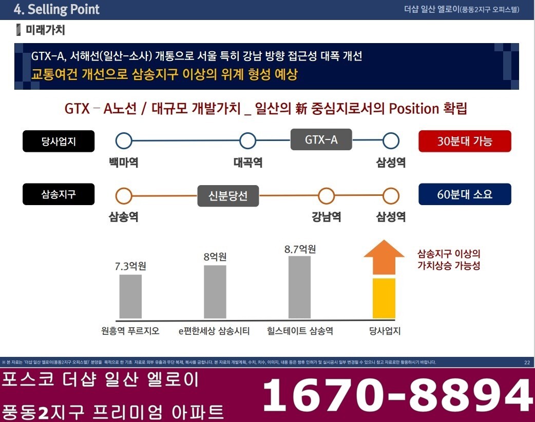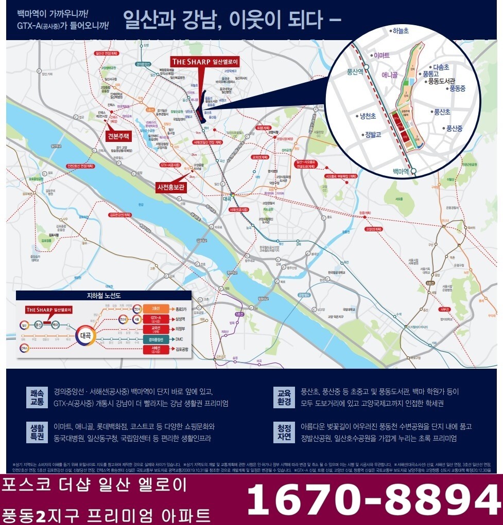 ■ 주변인프라: 롯데백화점, 현대백화점, 라페스타, 웨스턴돔, 원마운트 등의 쇼핑센터, 이마트, 홈플러스 등의 마트, 애니꼴, CGV,, 대형병원 (국립암센터, 일산병원 등), 킨텍스 등