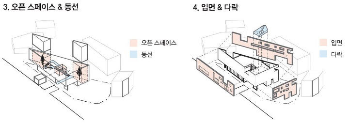 이러한 관계의 조직을 통해 필지가 만드는 맥락적 형태는 단순한 삼각형이지만, 풍부한 공간을 담으면서도 매력적인 시각적 형태가 된다.
