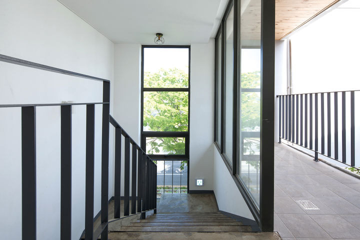 1층과 2층을 잇는 계단은 천장을 오픈해 시원한 느낌을 줬고, 3층 계단실은 발코니와 연결된 벽을 창으로 계획해 채광을 확보했다.