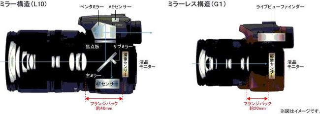 기존 DSLR 구조의 카메라에서 펜타프리즘(or 펜타미러)과 반사미러를 제거한 형태의 카메라로