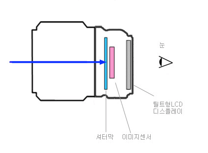 LCD를 통해 라이브뷰로 보이다가 셔터를 누르면 셔터막이 동작하면서