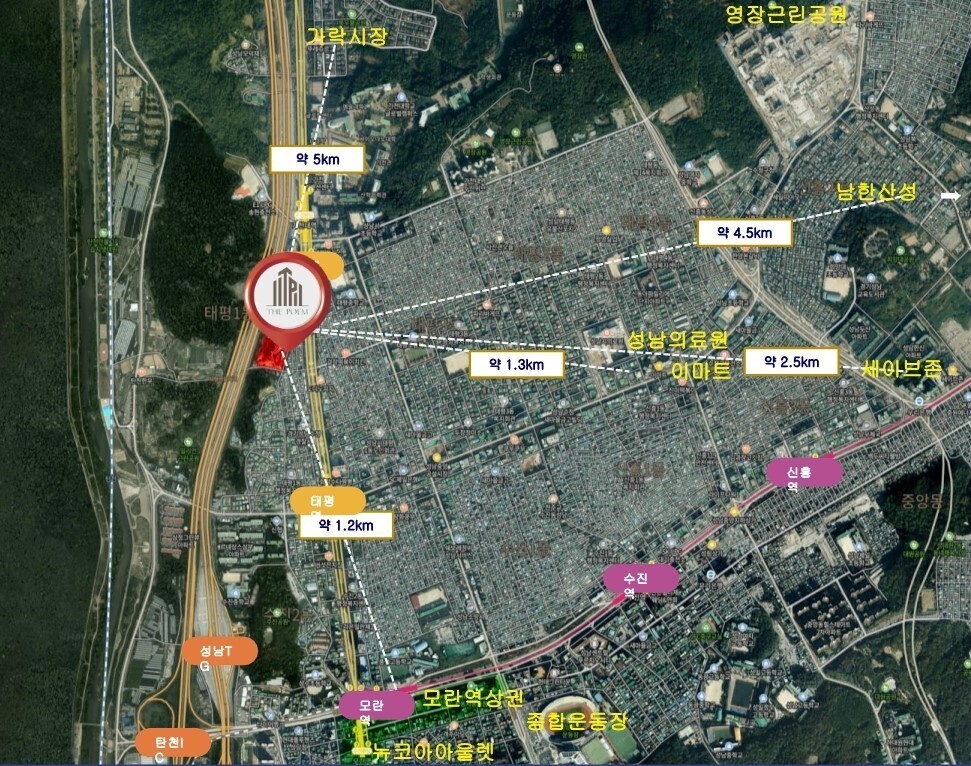 라: 8호선 복정역과 1 정거장 차이로 근접하며 모란역과도 근접(약 1.2 KM)