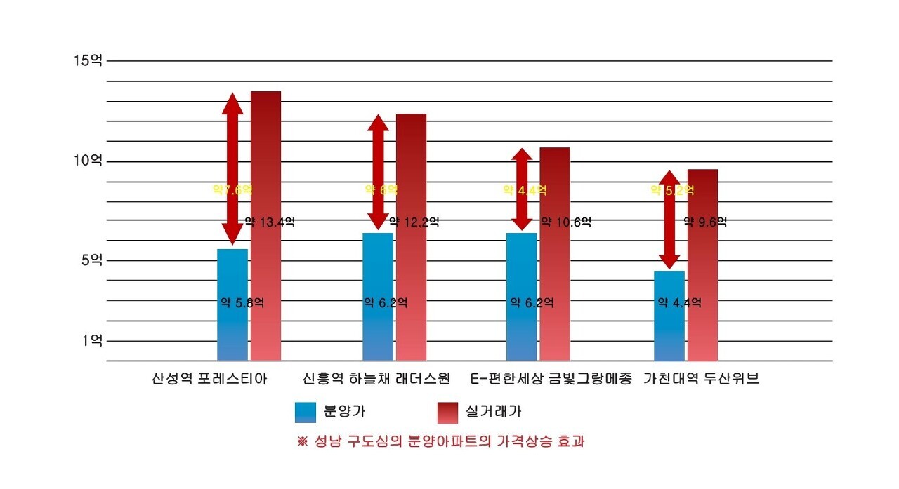 ■ 성남 구도심의 분양 아파트의 가격상승 효과