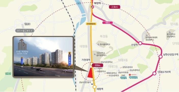 나:강남 ,송파, 분당까지 10분대,가천대역(200M)과 태평역(500M) 더블 역세권