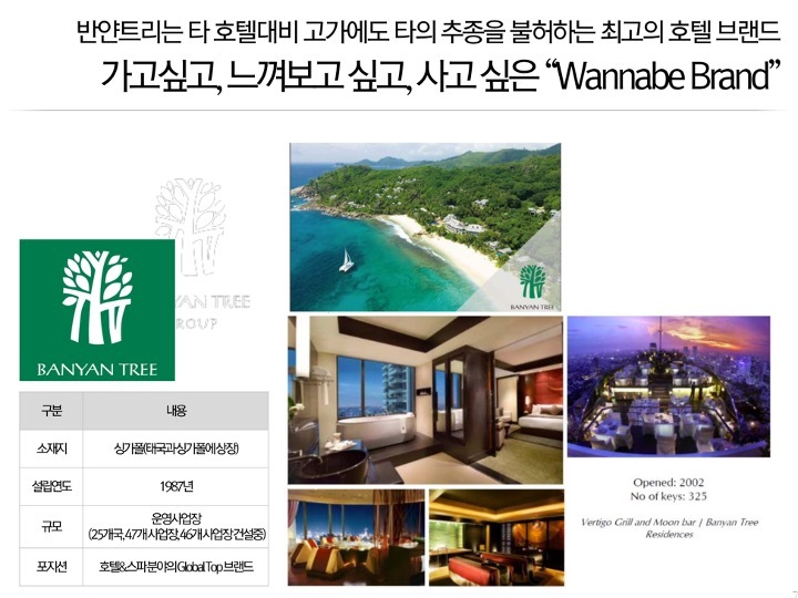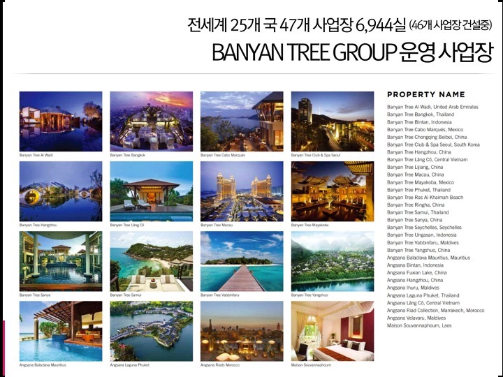 세계적으로 유명한 반얀트리에 소속이 된다는 것과 수익형 부동산 중에서도 첫 브랜드 상품으로 공급되고 있다는 점, 다양한 부동산 규제에서 벗어난다는 점과, 반얀트리 센추리클럽(세계회원권)을 즉시로 받을 수 있어 25개국 47개의 사업장과 공사중인 43개의 사업장 전부 사용이 가능하다는 메리트, 거기다 희소가치와 브랜드가치, 회원권과 바다 조망가치 등 높은 시세차익으로 수익률까지 기대할 수 있는 상품입니다.