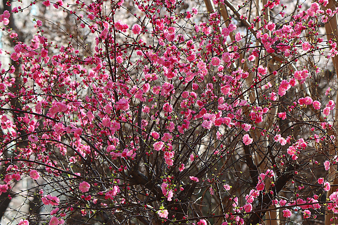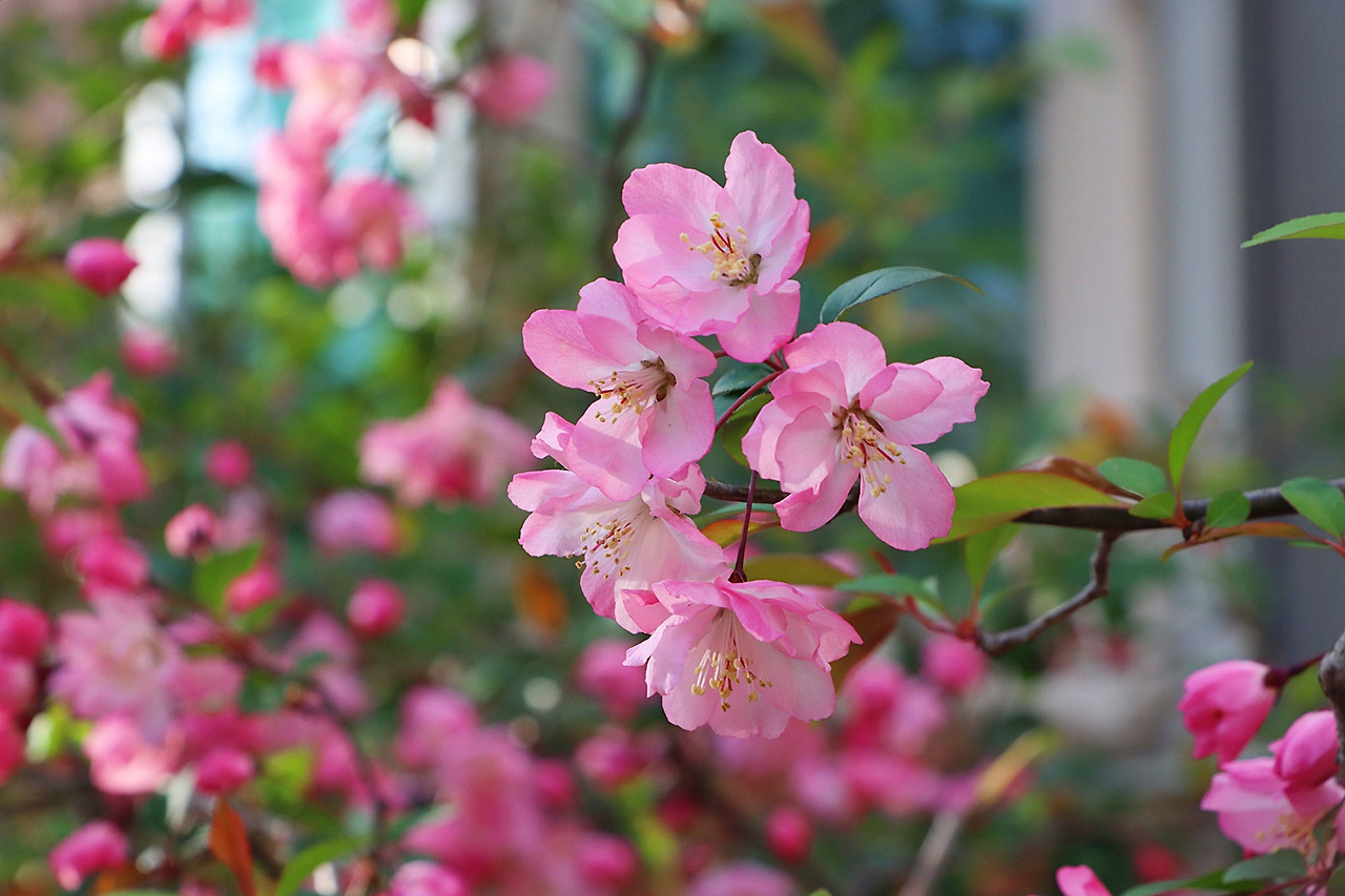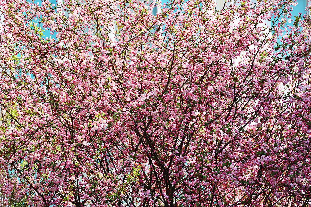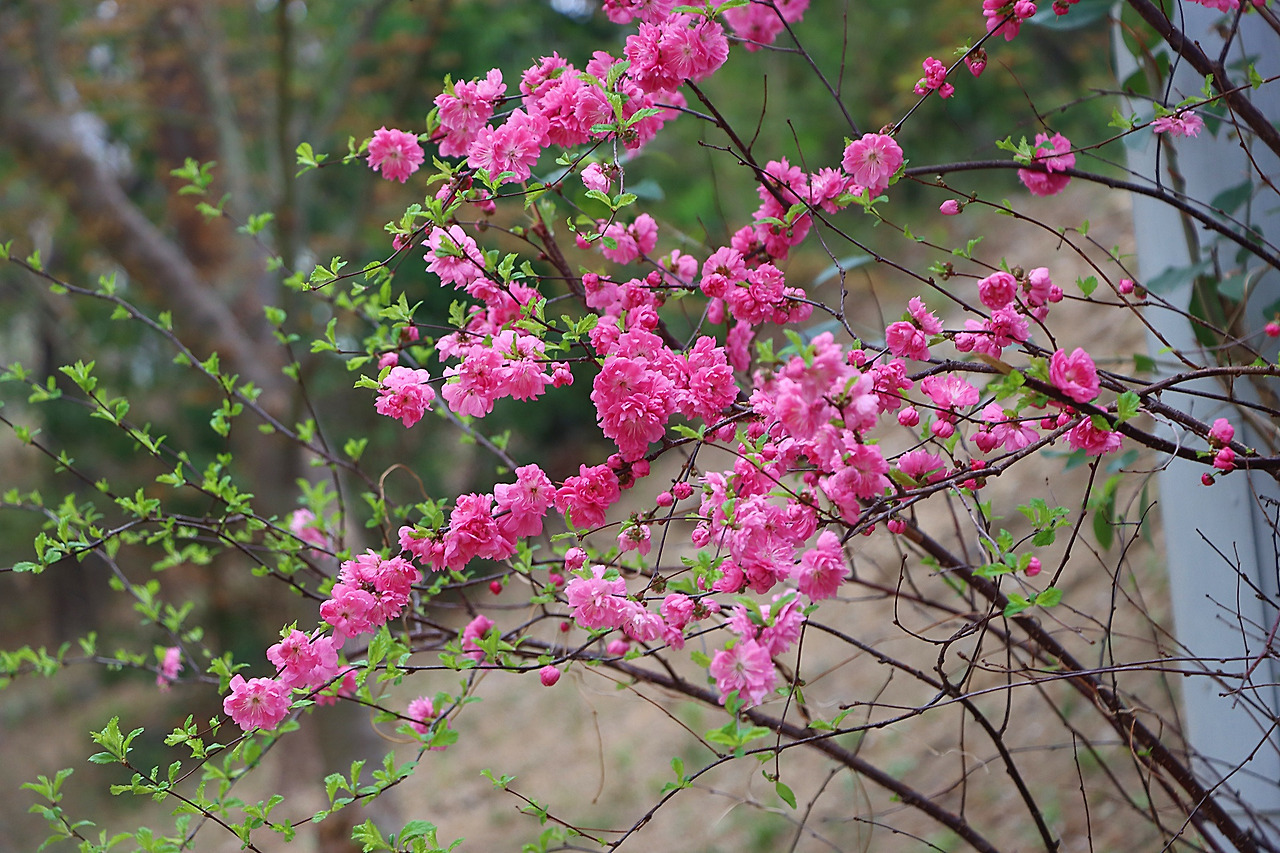 사과나무속의 키작은나무. 중국 원산으로 3~4월경 연한 자주색 꽃이 핀다.