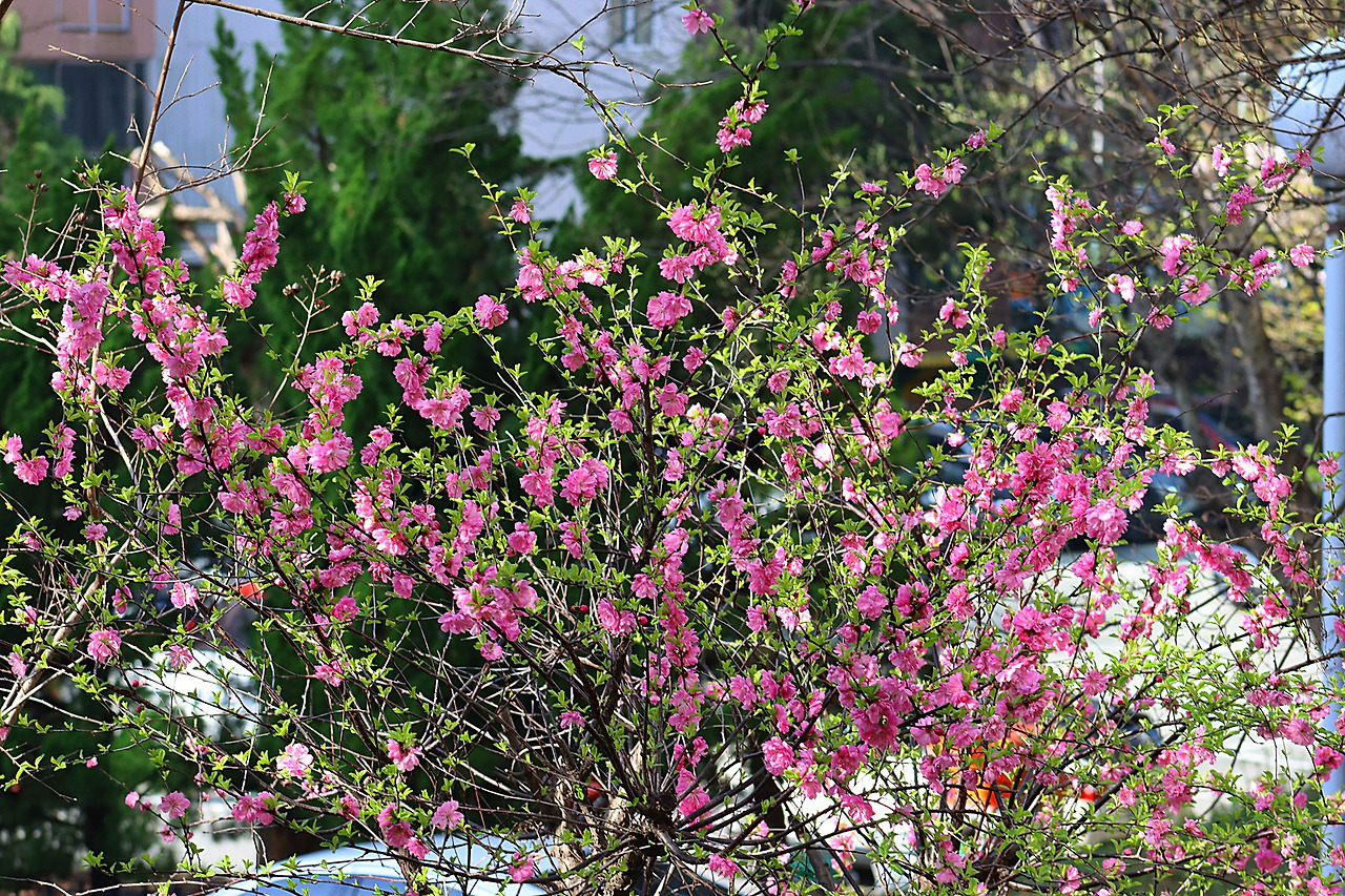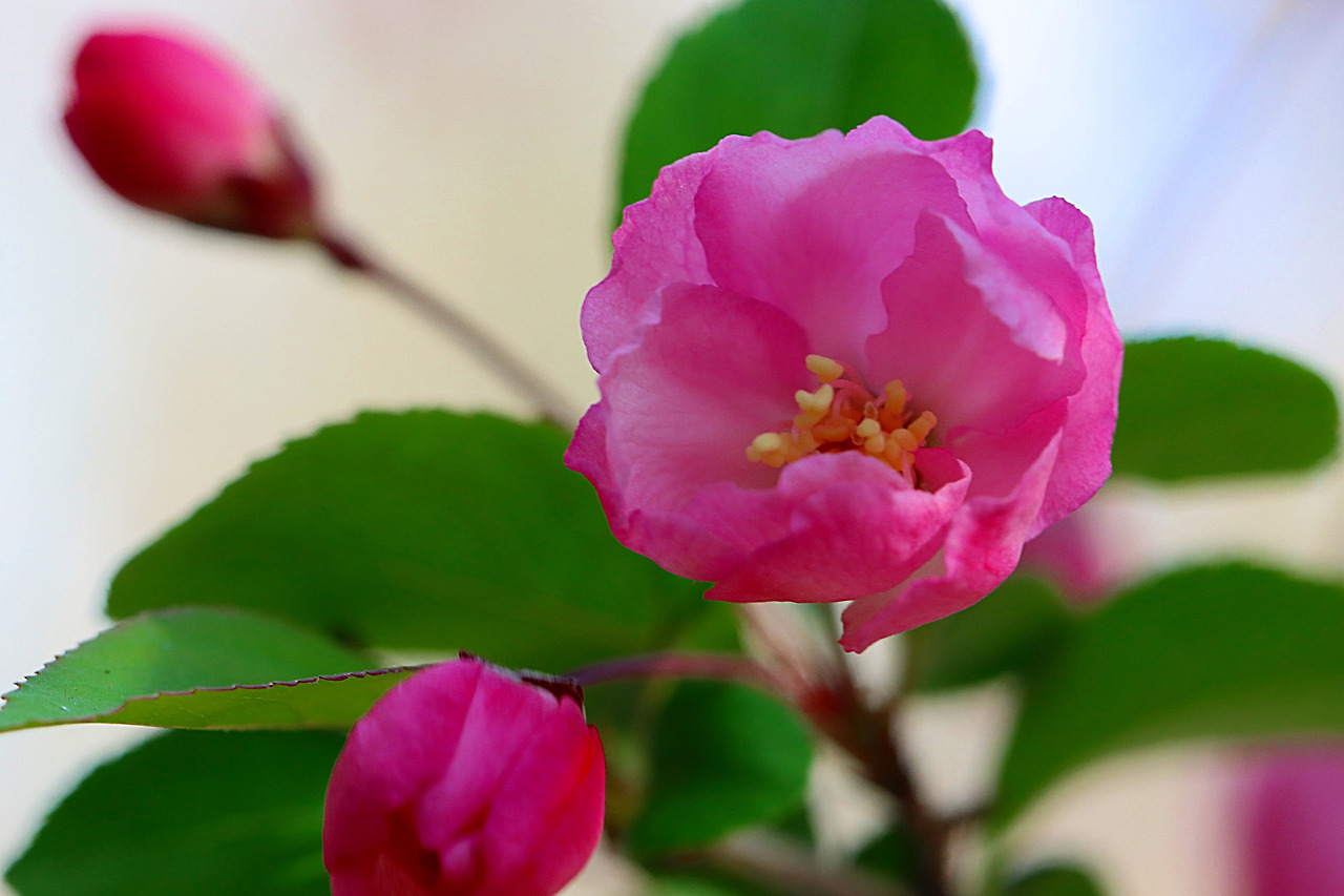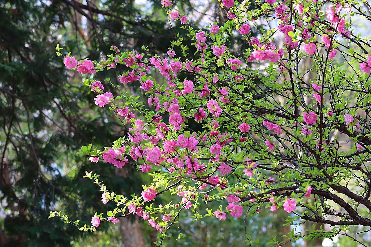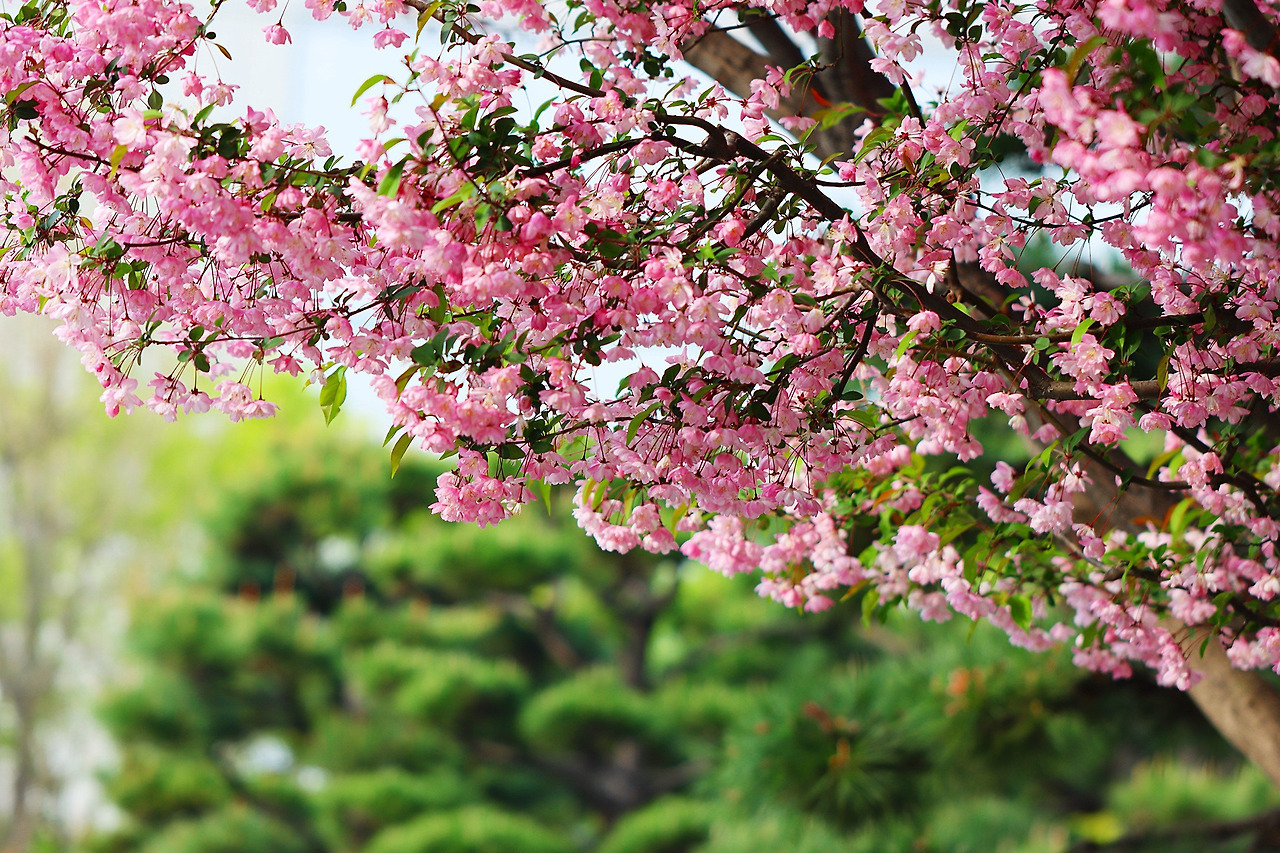 사과나무속의 키작은나무. 중국 원산으로 3~4월경 연한 자주색 꽃이 핀다.