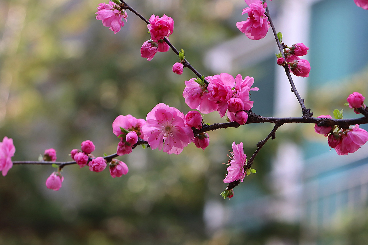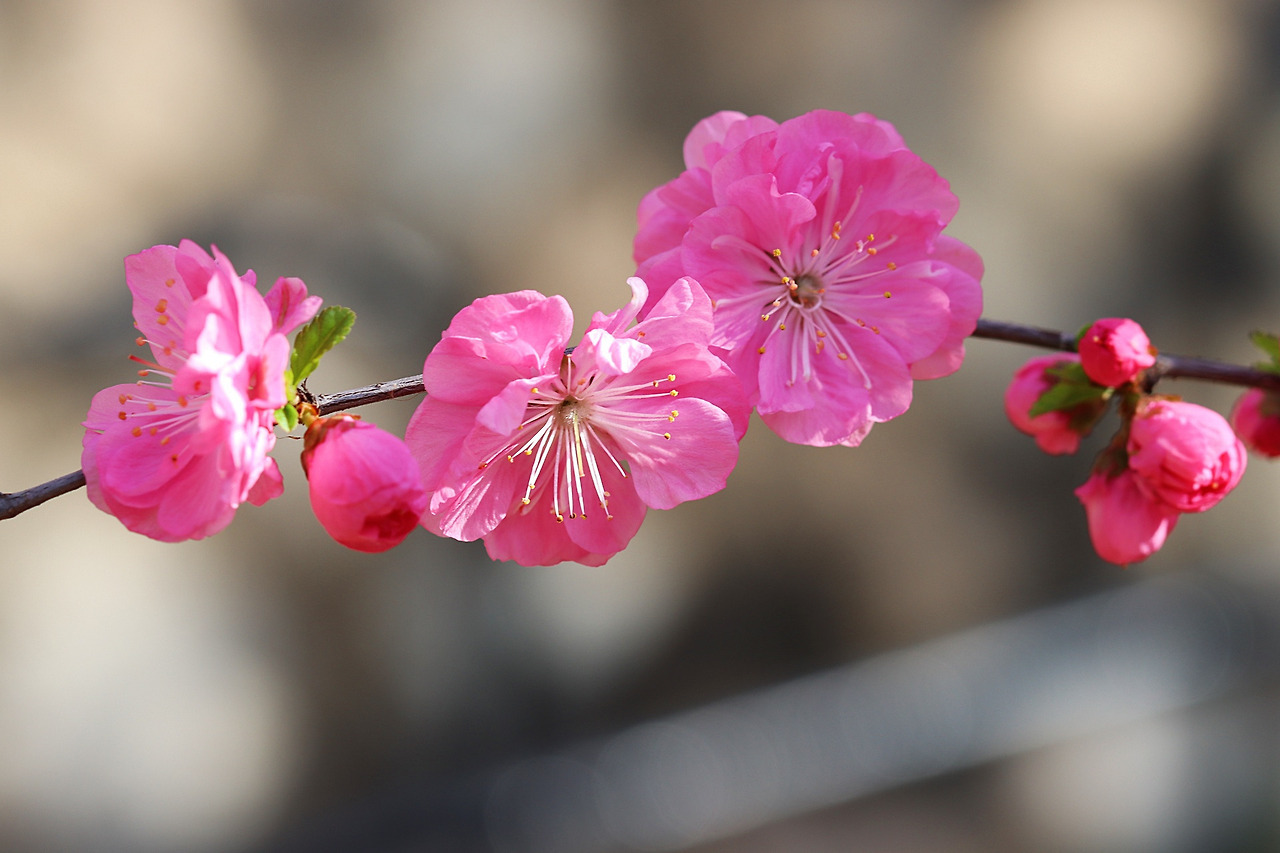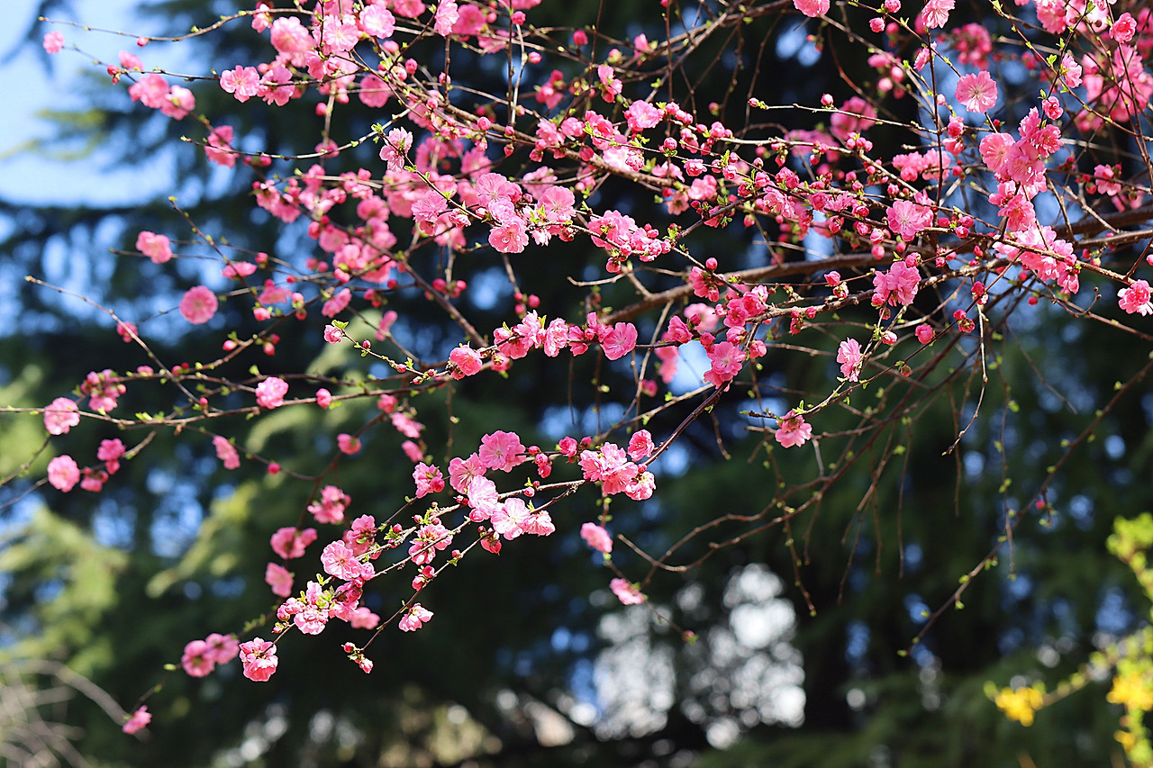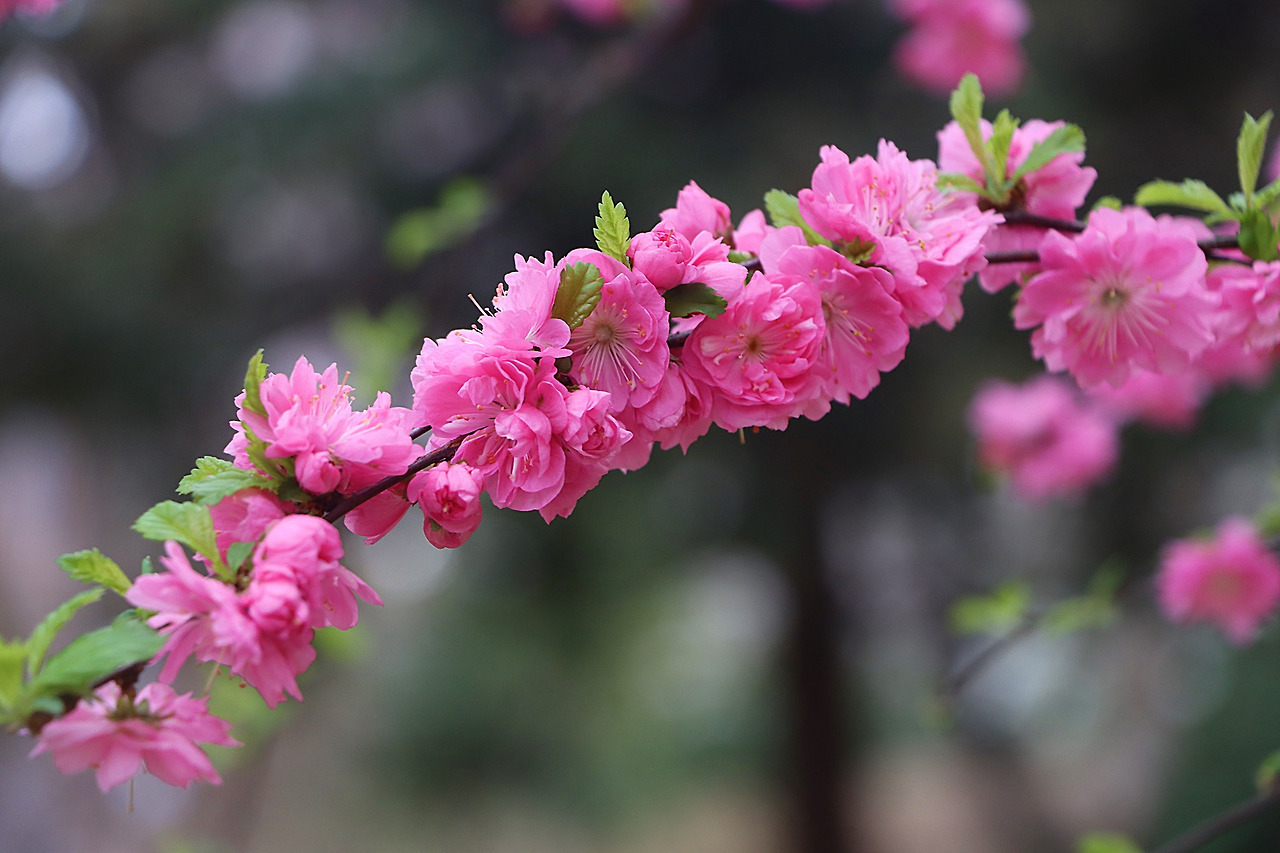 잎이 돋기 전 꽃봉오리가 진분홍색으로 부풀어오르는데 꽃이 만개하면
