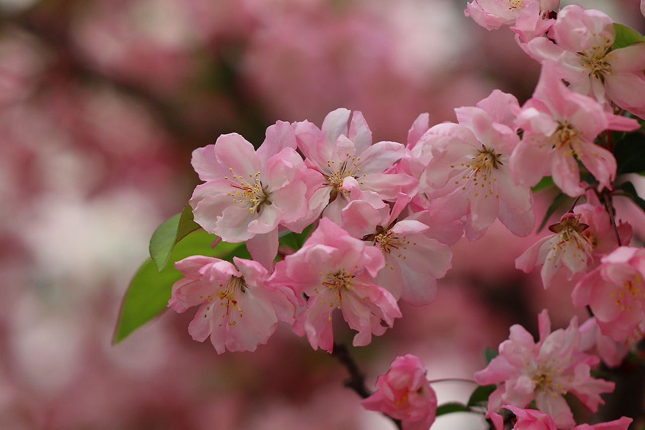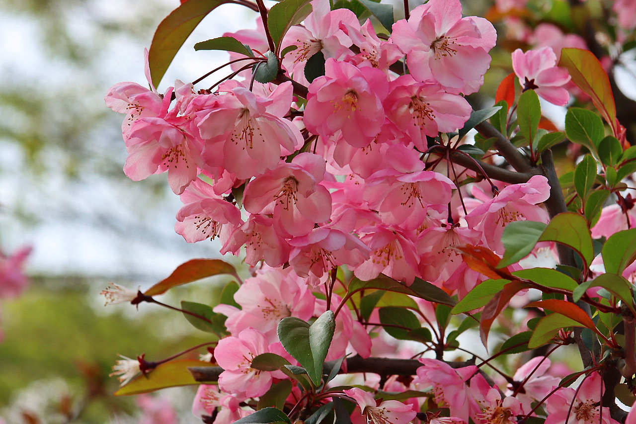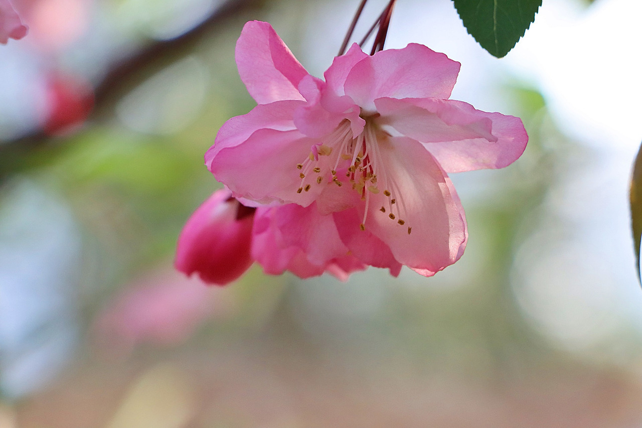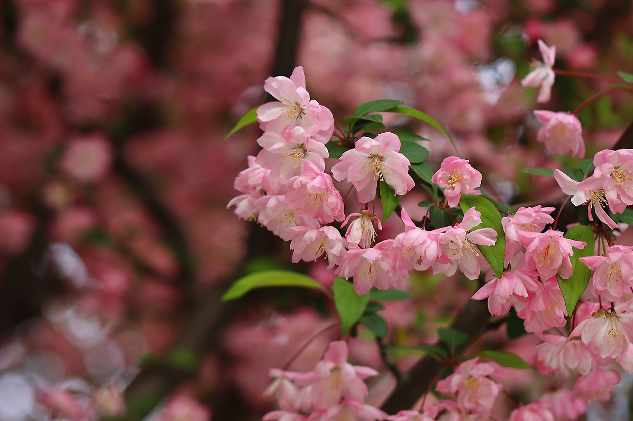 꽃사과로 불리는 경우가 많다. 늦은 봄부터 연한 자주색 꽃이