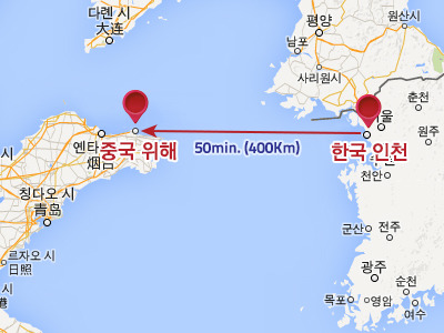 *다루 산(大乳山) 루산커우(乳山口), 백사장을 중심으로 한 루산커우(乳山口) 관광 구 청산터우(成山?)는 산둥반도의 동쪽 끝에 있으며 톈진터우「天??」라고도 불린다. 한국에서 94해리 정도 떨어져 있다.