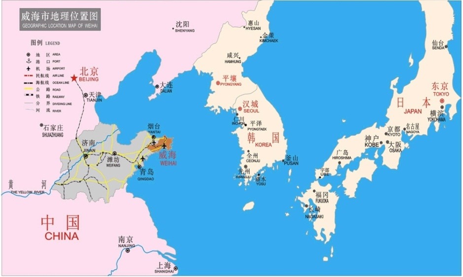 위해위(威海?)는 웨이하이 시(威海市)의 또 다른 이름으로서 중국 근대 제 1 해군부대 북양 수군 (第一支海?北洋水?)의 창시지(?始地)였다. 또한 청일전쟁 때 영국 해군의 주요 해군 기지였다. 1988년, 국무원은 웨이하이 류공다오(?公?), 청산터우(成山?)를 국가 급 풍경 명승지로 지정했다.
