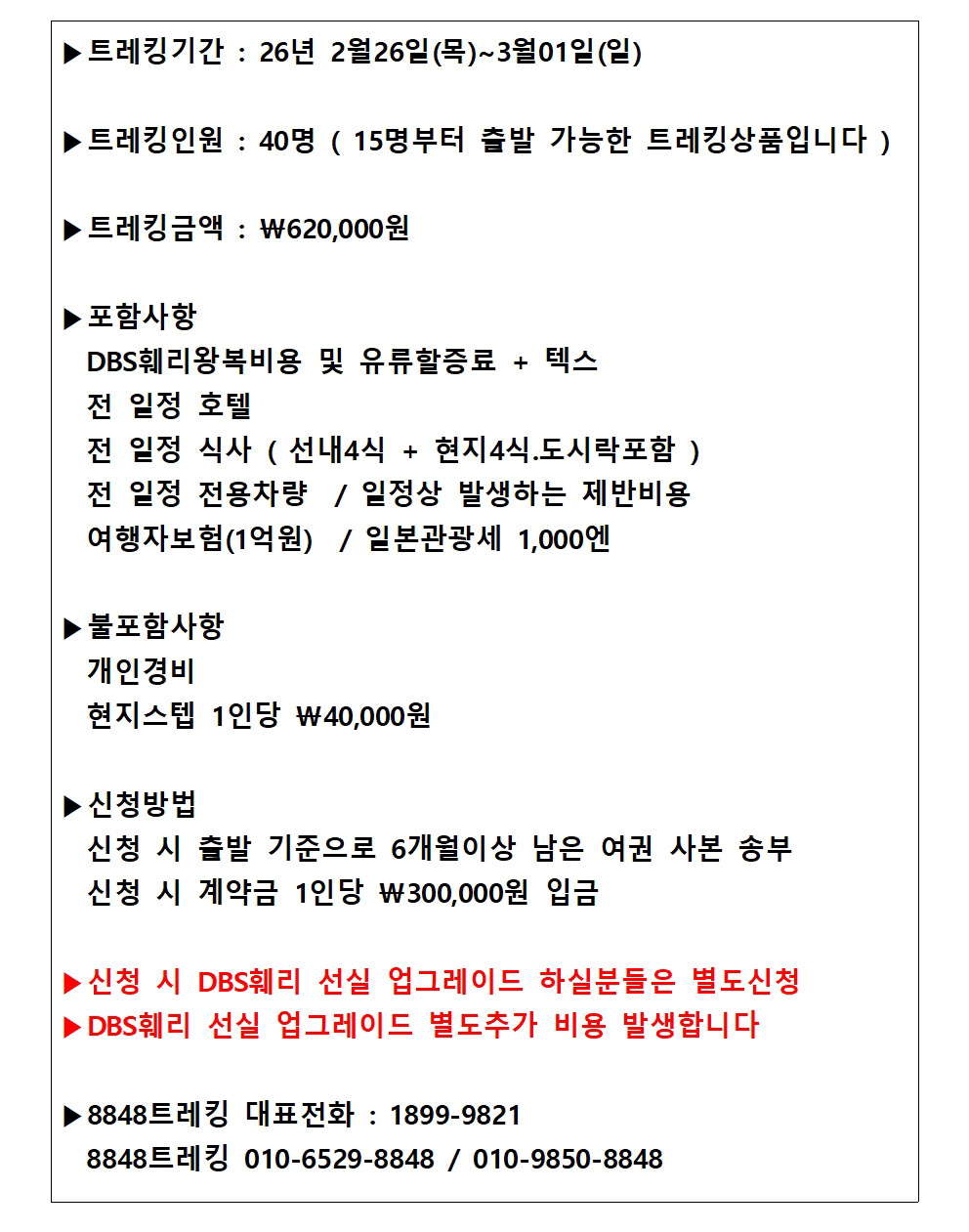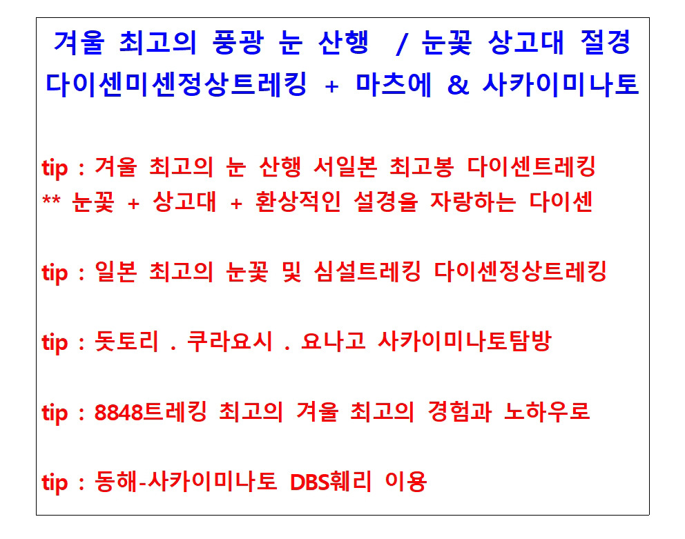 "서일본 최고의 설경 눈꽃 상고대 심설 다이센정상트레킹" 26년 02/26일(목)~03/01일(일) DBS훼리 목요일출발