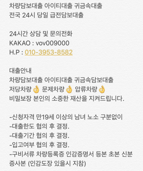 자동차 귀금속 아이티 댬보댸출 해드립니다 작성자전차량|작성시간19.06.09|조회수482 목록 댓글 0 글자크기 작게가 글자크기 크게가 . 다음검색 현재 게시글 추가 기능 열기 북마크 공유하기 신고 센터로 신고 댓글 댓글 0 댓글쓰기 답글쓰기 댓글 리스트
