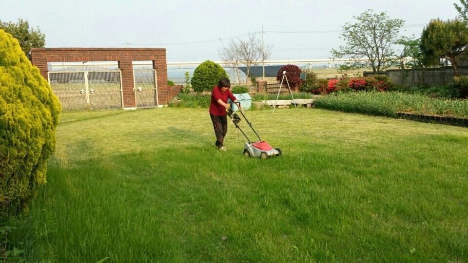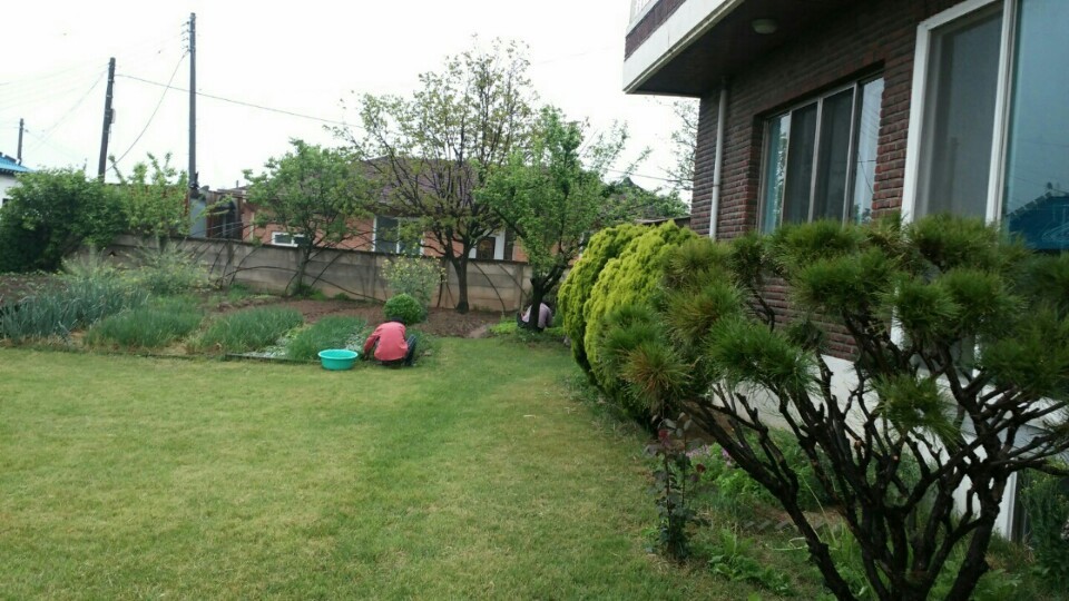 깔끔하게 가꾼 정원수도 보이고 잔듸밭도 보이지요?