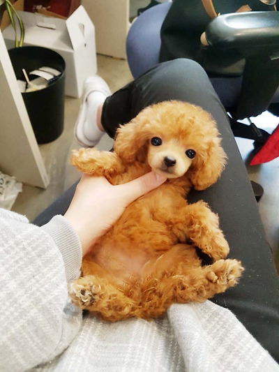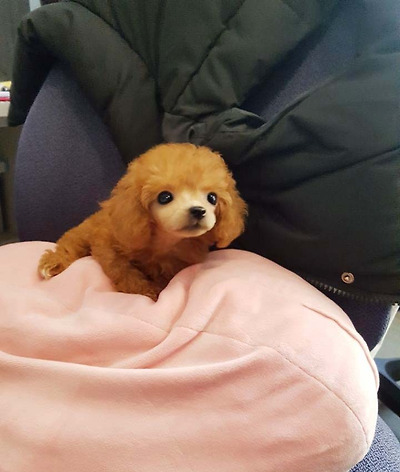 갈색털을 가진 체구작은 순종토이푸들 이구요~