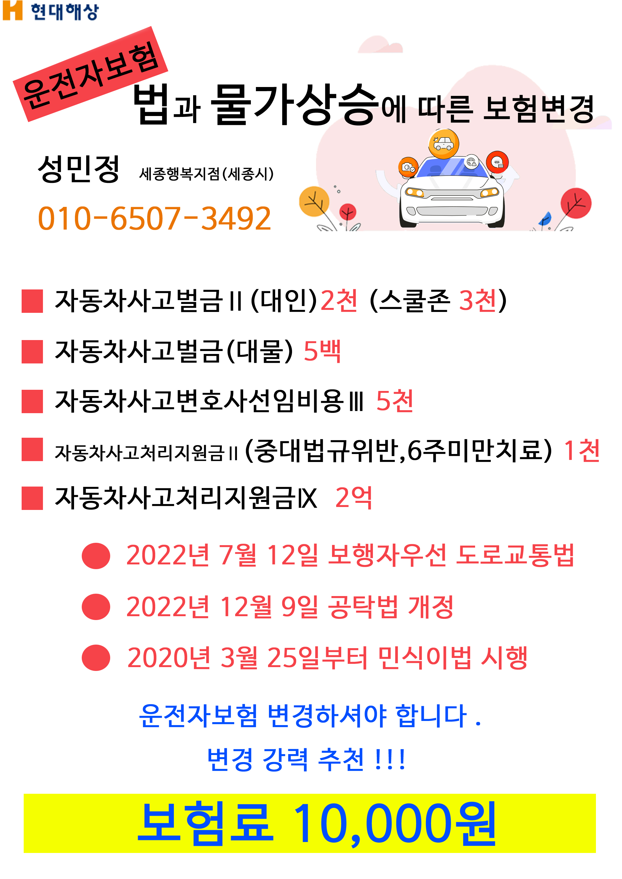 운전자보험 법과 물가상승에 따른 보험변경 작성자현대해상 성민정|작성시간23.01.17|조회수9 목록 댓글 0 글자크기 작게가 글자크기 크게가 다음검색 현재 게시글 추가 기능 열기 북마크 공유하기 신고 센터로 신고 댓글 댓글 0 댓글쓰기 답글쓰기 댓글 리스트