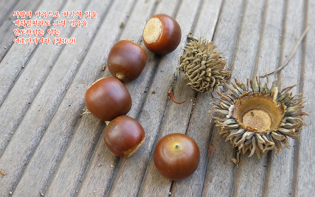 도토리알 다섯개가 다람쥐를 기다리네 작성자최용우|작성시간17.09.12|조회수17 목록 댓글 1 글자크기 작게가 글자크기 크게가 꾀꼬리산 올라가다 보니 여기저기 도토리들이 많이 떨어져 있네요.- 세종 꾀꼬리봉 정상 데크에서 ⓒ최용우(퍼가기 대환영) 바탕화면 무료사3486진 http://cyw.pe.kr/xe/a33 다음검색 현재 게시글 추가 기능 열기 북마크 공유하기 신고 센터로 신고 댓글 댓글 1 댓글쓰기 답글쓰기 댓글 리스트 작성자최용우 작성자 본인 여부 작성자 | 작성시간 17.09.12 사람이 마음으로 자기의 길을 계획할지라도 그의 걸음을 인도하시는 이는 여호와시니라.(잠16:9) 그러니까 ‘아무 계획도 세울 필요가 없고 아무것도 할 필요가 없다’는 뜻이 아닙니다. 사람이 마음으로 자기의 길을 계획하면 그 계획이 잘 이루어지도록 이끌어 가시는 분이 여호와십니다. 계획이 없으면 여호와도 이끌어 가실 수가 없습니다. 댓글 전체보기