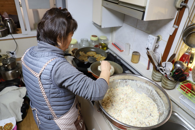 후원에서는 맛있는 빈대떡이 만들어 지고 있습니다~~ㅎ