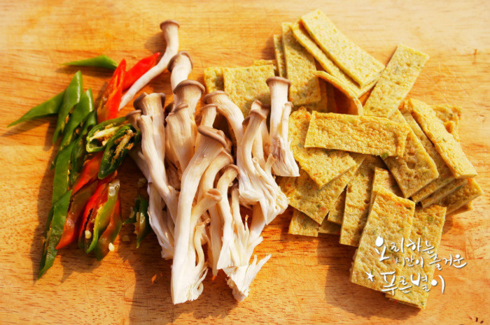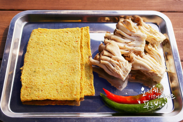 사각어묵5장 ,느타리버섯1팩,청양고추2개 ,통깨약간