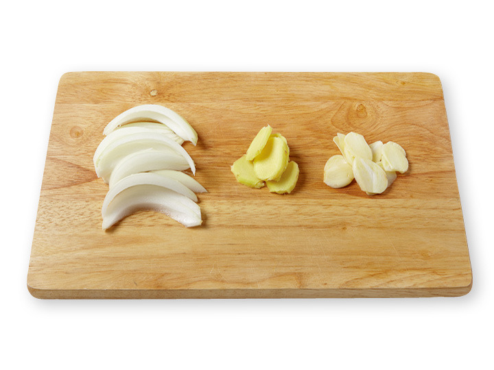 양파는 채 썰고, 생강과 마늘은 얇게 썰고,