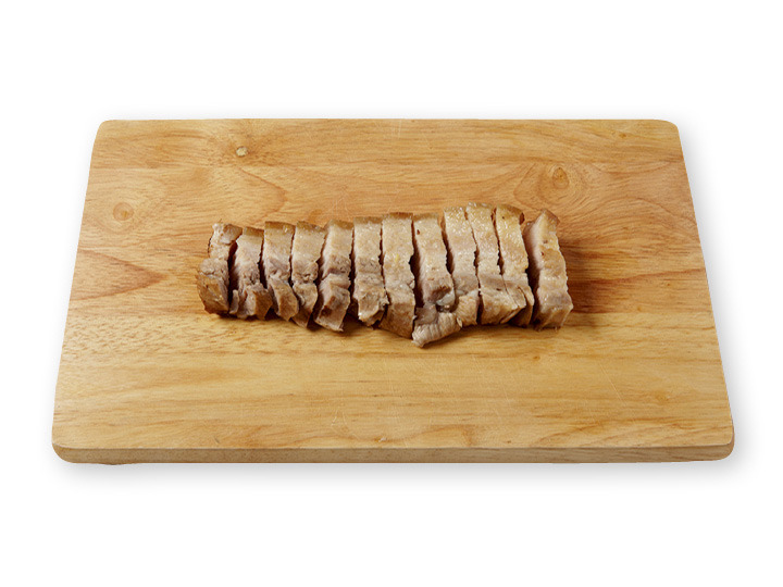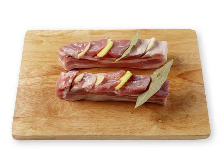 통삼겹살을 꺼내 칼집 사이의 재료를