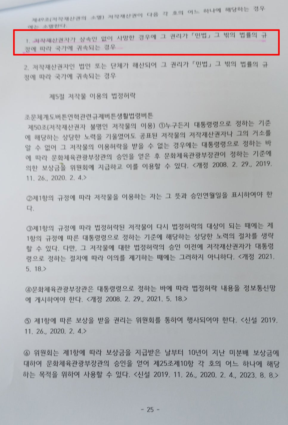 저작재산권 사망시 상속자가 없으면 국가에 귀속