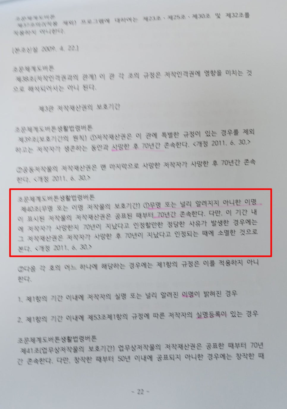 유명인이든 무명이든 저작물은 사후 70년 저작자 없이 저작물 사용을 못하는데