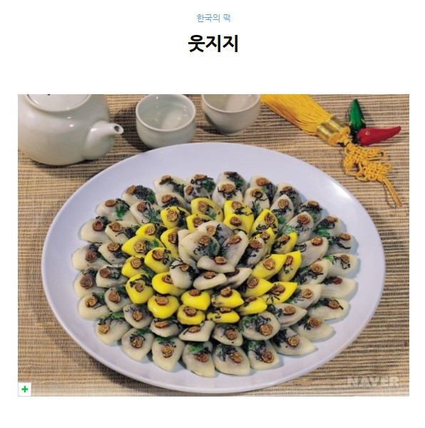 웃지지란 찹쌀가루를 익반죽하여 가운데에 소를 넣어 반으로 접어 눌러 붙이고 고명을 얹어 기름에 지져낸 것으로 그 모양과 색이 화려하고 고우므로 주로 편의 웃기떡으로 많이 쓰인다. 또한 혼례 때나 사돈댁에 이바지 음식으로 보내기도 하는데, 이러한 풍속은 특히 집안 여인네들의 입막음용으로 시댁식구들과 친척과의 관계가 원만하게 잘 유지되길 기원하는 의미를 지니고 있다고 한다. 우찌지, 우찍이라고도 불리며 우찍은 별[성진(星辰)]을 나타낸다고 한다.