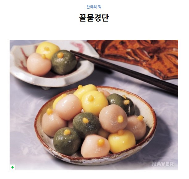 꿀물경단은 찹쌀가루와 멥쌀가루를 익반죽하여 둥글게 빚은 다음 끓는 물에 삶아 건져 꿀물에 담근 것으로 황해도 지방의 향토음식이다. 떡을 만들 때에 찹쌀만을 이용하면 차지고 쫄깃한 맛은 있지만 늘어지는 단점이 있으므로 멥쌀가루를 섞어서 빚으면 떡이 늘어지는 것을 보완할 수 있고 동그란 모양도 잘 살릴 수 있다. 색을 물들임에 있어 오미자 · 맨드라미꽃 · 쑥 · 치자 등의 천연색소를 이용하는데 이는 떡의 색이나 맛뿐만 아니라 각각의 약리적 작용과 효능이 있어 떡을 먹는 즐거움과 함께 건강을 도모할 수 있어 더욱 좋다.