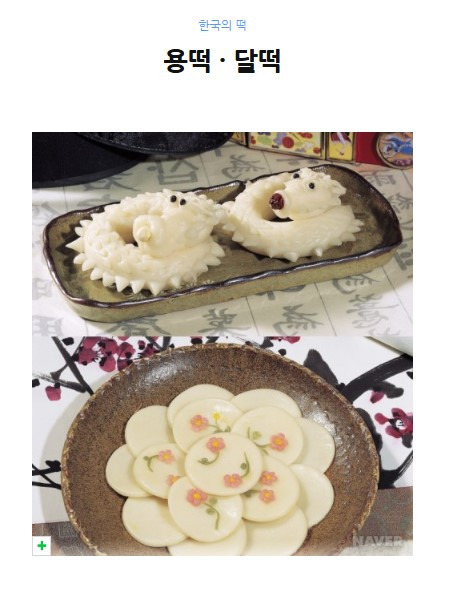 용떡은 멥쌀가루를 익반죽하여 쪄서 굵직하고 길게 비빈 가래떡 모양으로 만든 후 다시 용틀임 형상으로 빚어 큰그릇에 서리게 담은 떡으로 풍어제를 지낼 때나 지방에 따라 혼례 때 쓰기도 한다. 혼례식 때 쓴 용떡은 혼례 다음 날 떡국을 끓이거나 죽을 쑤어서 신랑에게 먹이는 풍습이 있다. 달떡은 절편에 속하는데, 절편은 지방마다 크기나 모양, 종류가 다른데 제주도는 쌀이 귀해 평소에는 메밀로 만든 떡이 많으며, 쌀로 만드는 떡은 명절, 제사 때만 써 왔다. 대개 달떡은 혼인이나 회갑잔치 때의 큰상에 괴는 떡으로 많이 쓰이는데, 그 빛깔이 달처럼 희고 밝을 뿐만 아니라 둥글고 소박하여 평안함과 부드러움을 느끼게 해 준다.