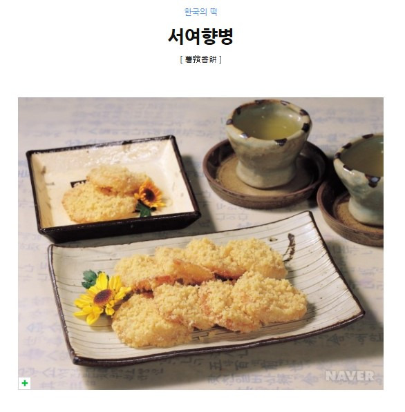 서여향병(薯蕷香餠)은 마[산약(山藥)]를 썰어 쪄낸 다음 꿀에 담갔다가 찹쌀가루를 묻혀서 기름에 지져내어 잣가루를 입힌 것으로 바삭하면서도 쫄깃하고 고소한 맛이 일품이다. 빙허각 이씨의 저서인 <규합총서(閨閤叢書), 1815>에 처음으로 '서여향병'이란 떡이름과 그 제법이 기록되어 있는 것으로 미루어 보아 이 떡은 조선시대 후기에 만들어 먹었던 것으로 추측된다. <주방문(酒放文), 1800년대 중엽>, <역주방문(歷酒方文)> 등에는 서여향병이 산약병(山藥餠)으로 기록되어 있다. 마는 기운을 보(補)하고, 살을 찌게 하고 정신을 안정시키며, 기억력을 좋게 하는 알칼리성 식품으로서 생식해도 소화흡수가 잘되는 건강식품으로 알려져 있다.
