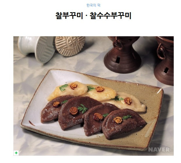 찰부꾸미와 수수부꾸미는 찹쌀가루와 찰수수가루를 뜨거운 물로 익반죽하여 동글 납작하게 빚어 여러 가지 소를 넣어 반달 모양으로 접어 기름에 지진 떡이다. 부꾸미는 화전이나 주악처럼 기름에 지지는 떡의 일종이나 소를 넣고 반으로 접어 다시 지지는 것이 다르며 떡의 재료로는 찹쌀, 찰수수 등 차진 곡물로 만들고 소를 넣고 반으로 접었을 때 끝이 착 달라 붙고 떨어지지 않도록 꼭꼭 눌러 지진다. 부꾸미의 크기와 모양은 여러 가지가 있으며 떡에 넣는 소로는 대개 녹두고물 이외에도 견과류나 팥고물을 사용하며 그 쫄깃한 맛과 예쁜 모양으로 보기만 해도 마음이 환해지는 떡이다.