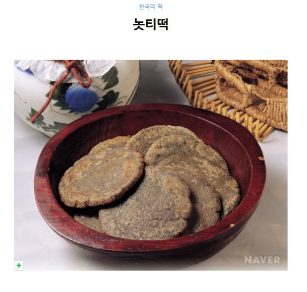 놋티떡은 찹쌀가루를 익반죽한 뒤 엿기름을 넣고 삭혀서 번철에 지져낸 것으로 평안도 지방의 유명한 향토떡으로 <요리전서, 1968>와 <전통향토음식조사연구보고서, 1970년대>에 떡이름과 만드는 법이 소개되어 있다. 평양지방에서는 놋티떡을 만들어 가까이 지내는 사람들에게 선물로 보내기도 하고 유학간 자녀들에게 보낼 정도로 귀한 떡이었다고 한다. 저장성이 좋아서 몇 달이 지나도 상하거나 굳지 않아 추석 때 만들어 두었다가 이듬해 한식성묘 때나 가족들의 간식으로 자주 이용하였다고 한다.
