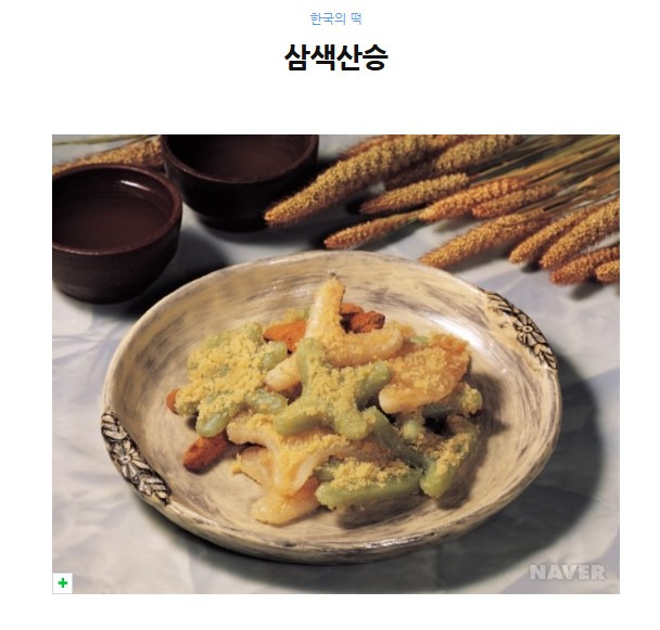 삼색산승은 찹쌀가루에 꿀을 넣고 익반죽하여 세 뿔 모양으로 둥글게 빚어 기름에 지져 낸 후 잣가루와 계핏가루를 뿌려 만든 독특한 형태의 전병으로 <음식방문>, <시의전서>, <조선요리법> 등에 만드는 법이 기록되어 있다. 특이한 모양과 부드러운 맛 때문에 작게 만들어 잔치 때 주로 편의 웃기떡으로 사용되었으나 현대로 내려오면서 거의 만들지 않고 있다.
