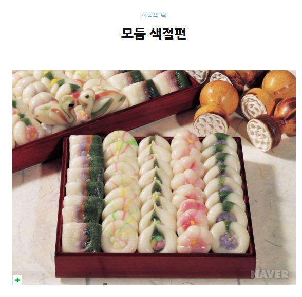 모듬 색절편은 오미자 · 쑥 · 포도 · 치자 · 코코아 · 딸기 등의 여러 가지 천연색으로 물들인 떡 덩이를 이용하여 꽃, 새, 사탕, 나뭇잎, 용, 옥춘당 모양을 내기도 하고 다양한 무늬의 떡살로 찍어 만들기도 하는데, 화려하고도 매력적인 떡이다.