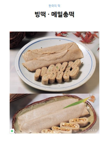 빙떡은 메밀가루를 묽게 반죽하여 기름을 두른 번철에 얇게 펴놓고, 가운데에 채 썰어 삶아 양념한 무를 소로 넣고 말아서 지져낸 떡으로, 제주지방에서는 관혼상제에 빼놓지 않고 올렸으며, 떡을 만드는 과정에서 알 수 있듯이 돌돌 말아서 만든다고 해서 '빙떡' 또는 멍석처럼 말아 감는다고 해서 '멍석떡'이라고 하는데, 이밖에도 전기떡 · 쟁기떡 · 연빙 등 여러 다른 이름으로 불리어 진다. 한편, 메밀총떡은 메밀가루를 묽게 반죽하여 번철에 지지다가 소를 넣고 말아 익힌 부침개의 일종으로 강원도의 대표적인 향토음식이다. 소는 김치에 볶은 돼지고기나 오징어를 섞어 만들기도 하는데 떡이라기 보다는 찬물에 가깝게 여겨지며 맛이나 모양 또한 소박하여 친근감을 갖게 하는 음식이다.