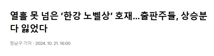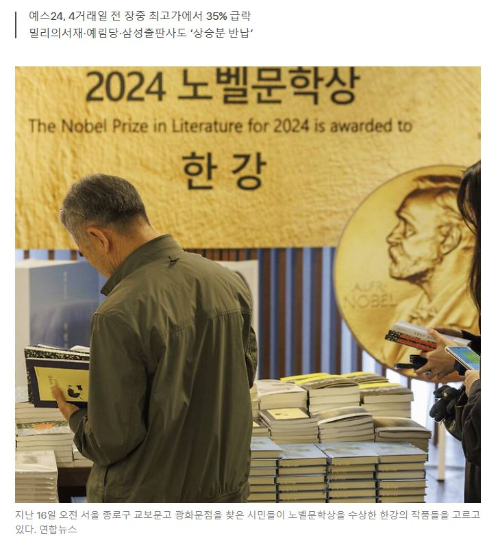 요약: 한강 작가 노벨문학상 수상 후 테마주 급등락 현상