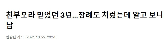 다른 나라 기사를 빗대어 기사가 나옵니다. 위와같은 느낌이 들게하는 장례식장 친부모가 아니레...
