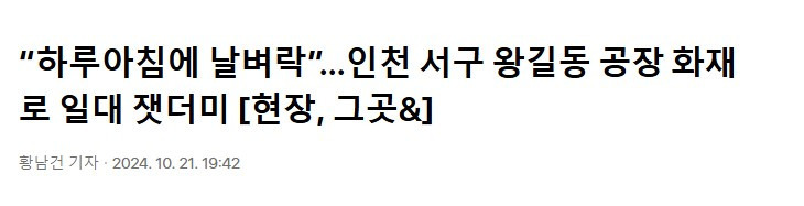 발생 장소: 인천 서구 왕길동 공장 단지