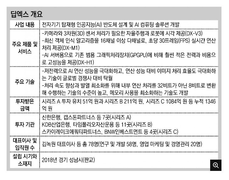 딥엑스는 전자기기에 탑재되는 AI 반도체 설계에서 앞서가는 스타트업이다. 에지(edge) AI 반도체로 불린다. 네트워크상에서 중앙의 데이터센터가 아니라 데이터(현장)에 가까운 네트워크상의 가장자리(edge)에서 데이터를 처리한다는 의미에서 나왔다.