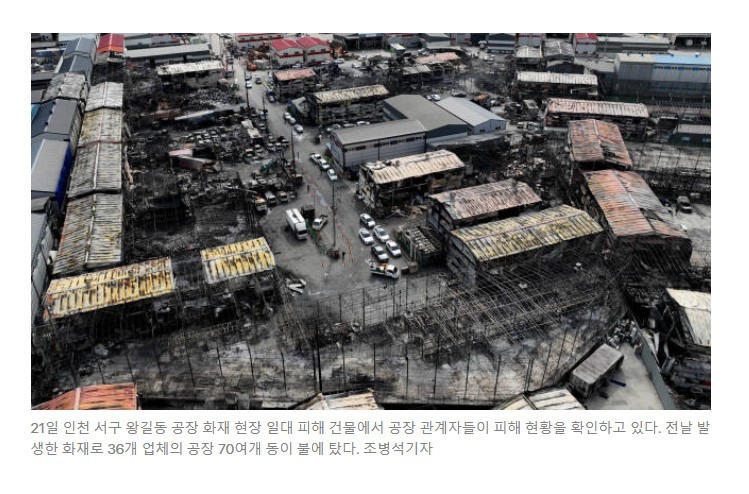 피해 규모: 36개 업체, 70여 개 동의 공장 소실