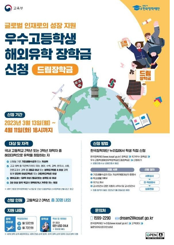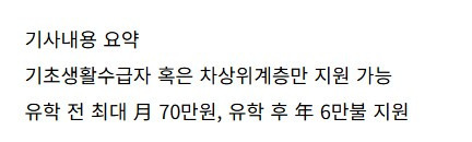 차상위부터 아래부터 저소득층 고등학교 장학금으로 유학비 나오는 6만달러까지 나오는 것이 있는데