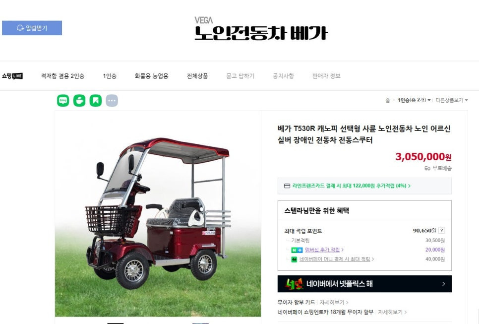 핸들바와 바퀴가 3~4개 달린 고령자용 전동차