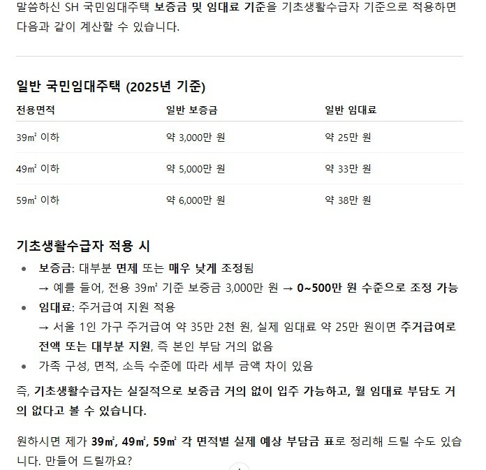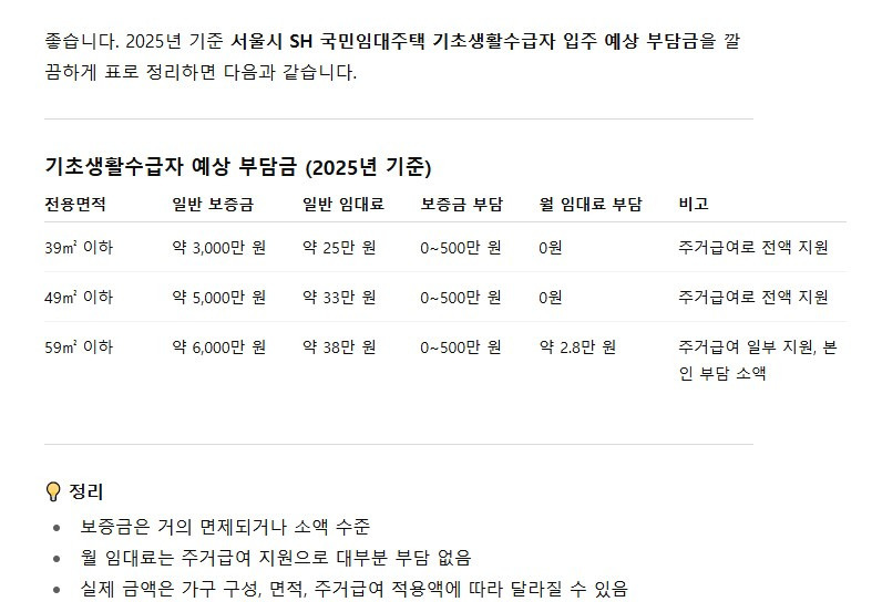 🏠 기초생활수급자 입주 혜택 요약