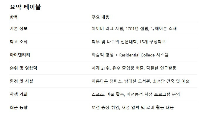 코네티컷주 뉴헤이븐에 위치한 사립 아이비 리그 대학이에요.