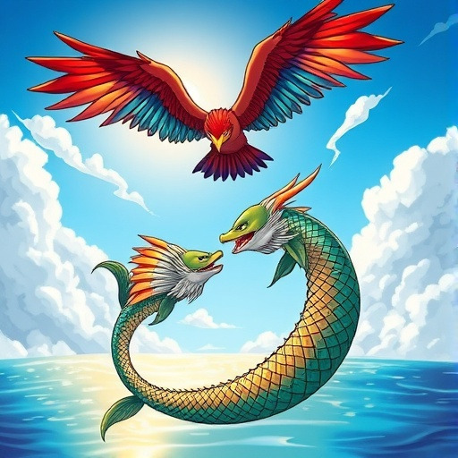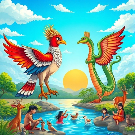 가루다와 나가는 언제나 서로를 지켜보며 하늘과 물의 수호자가 되었답니다.