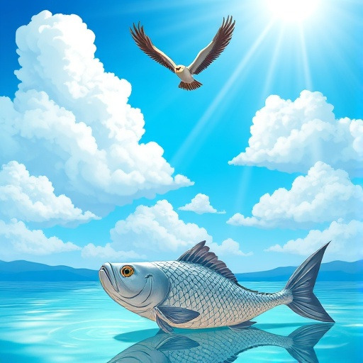 — 하늘과 물의 생명들이 함께 모여 평화를 축하하는 장면.