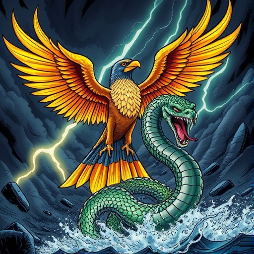 강력한 바람과 물보라 속에서 가루다와 나가는 서로의 힘을 시험하며 싸웠죠.